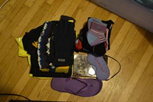 - Three pairs of socks: one to sleep in, one to walk in and a long pair when it was really cold