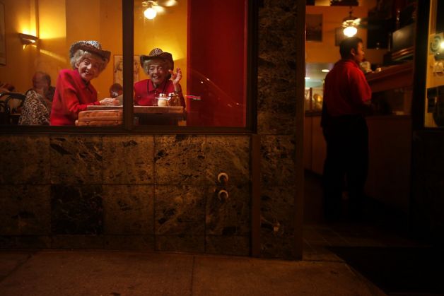 August 26, 2012 Marian and Vivian by the window The Brown Twins: Marian and Vivian, dining at their reserved table at Uncle Vito’s Pizza in San Francisco.