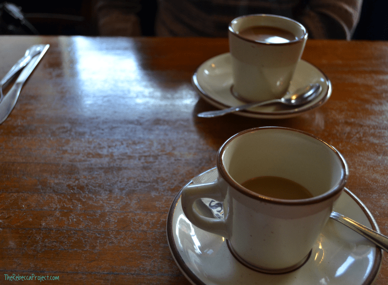 We both had a hankering for breakfast for lunch, so we hit up a greasy spoon along the main drag. I was so hungry, I don’t even remember looking away from my plate of eggs and pancakes until I was finished! I’m all class.