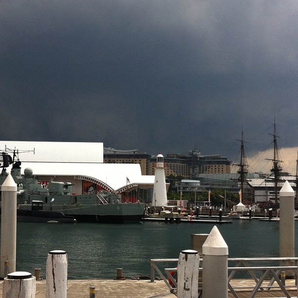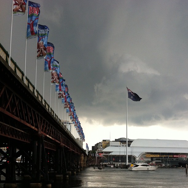 We spent yesterday in the city wandering around and were caught out in a rather violent storm. We sought refuge under the Pyrmont Bridge, and watched the storm unleash its fury. Torrential rain, whipping winds, hail, lightning strikes, rolling thunder.
